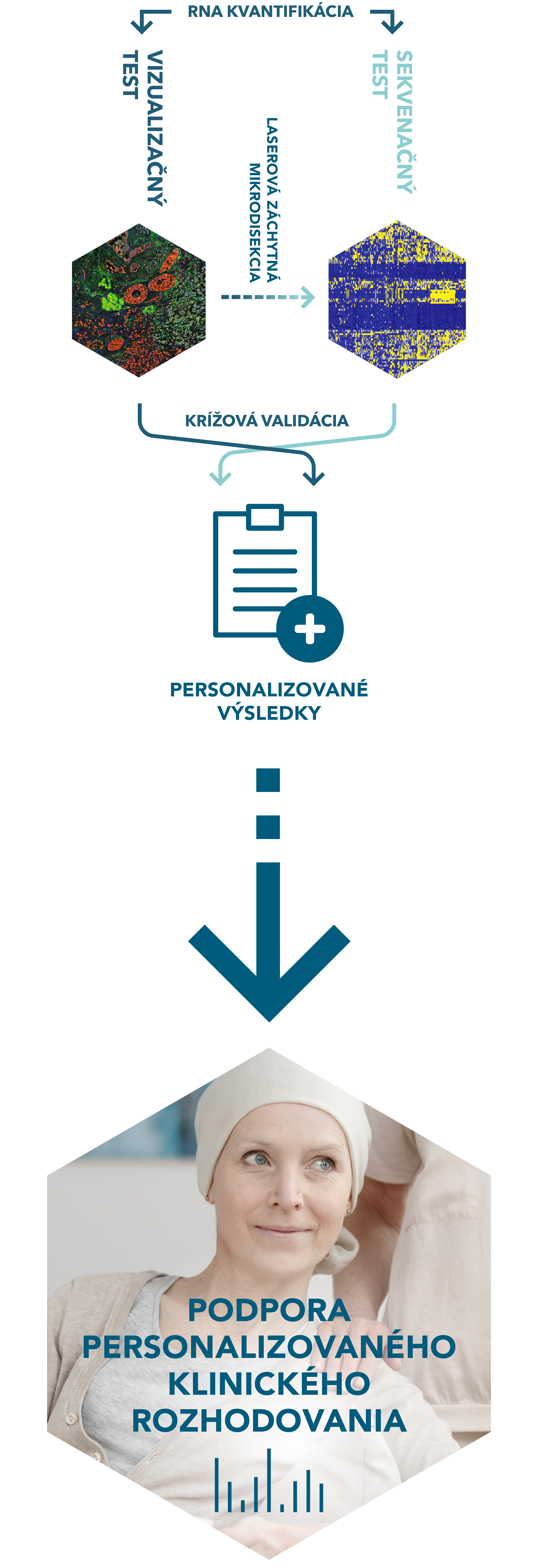 Náš diagnostický test Multiplex8+ RUO kombinuje špičkové zobrazovacie techniky, laserovú mikrodisekciu tkaniva a sekvenovenie novej generácie so sofistikovanými algoritmami na analýzu biopsie na mikroskopickej a molekulárnej úrovni. Tento komplexný prístup umožňuje presné určenie diagnózy, odhalenie heterogenity nádoru a návrh personalizovanej liečby.